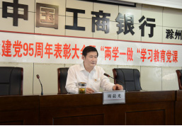 6月29日,工行滁州分行召开纪念建党95周年表彰大会暨“两学一做”学习教育党课。全体党员重温了入党誓词,会议表彰了优秀共产党员、优秀党委书记、优秀党务工作者和先进基层党组织。党委书记周晨光同志以《发扬小岗精神 知明行笃做好表率》为题,为全行党员讲授“两学一做”专题党课。(工行办公室)