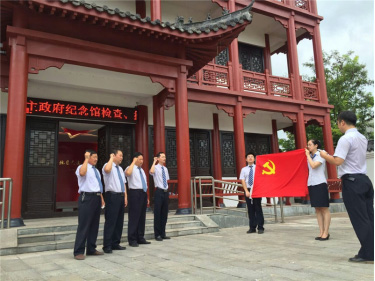 明光农商银行自来桥支行缅怀革命先烈重温入党誓词 发布日期: 2016-8-23 9:50:11 浏览人次: 1165 简介... 在抗战胜利71周年到来之际,明光农商银行自来桥支行全体党员在支部书记阚巍巍的带领下来到嘉山县抗日民主政府纪念馆参观学习,缅怀革命先烈,重温入党誓词。在纪念馆专业讲解员刘超同志的带领下,首先参观的是原址基础上修复的嘉山县政府工作旧址,28间厢房南北依次排开,里面拥挤着办公室、司法科、军法科、民政科、厨房和大通铺等,办公环境极其简陋,房间内的设施除了桌子和床外别无它物,真实还原了当时的工作环境。随后走进抗日民主纪念馆,介绍了嘉山县的历史来由。一张张图片、一件件实物再现了当时艰苦奋斗的岁月。参观结束后举行了庄严的入党宣誓。(陈凯凯)