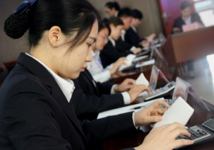 10月10日上午,定远农商银行举办了第三届综合业务技能大赛。来自业务一线的87名选手经三个半小时的激烈角逐,27人次荣获五个竞赛项目的一二三等奖。图为参赛员工正在进行翻打传票比赛。(韩一招 丁尔兵)